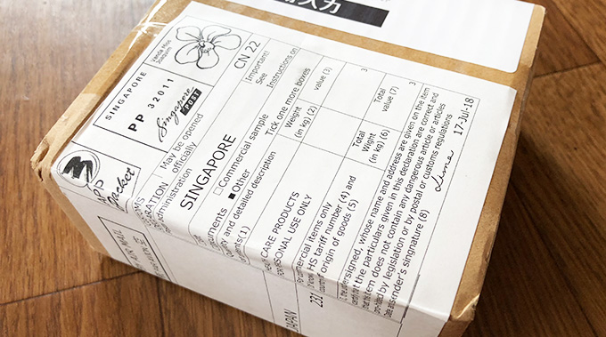 アイドラッグストアーにて注文していたジスロマックの輸送箱です。シンガポールからはるばるやってきました。育毛薬(プロペシア)の時と同じなので、意外と小さい簡易的な梱包だなという驚きはありません。
